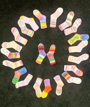 U příležitosti Světového dne Downova syndromu jsme uspořádali ponožkový den. Heslo tohoto dne bylo: Na každou nožku, jinou ponožku.