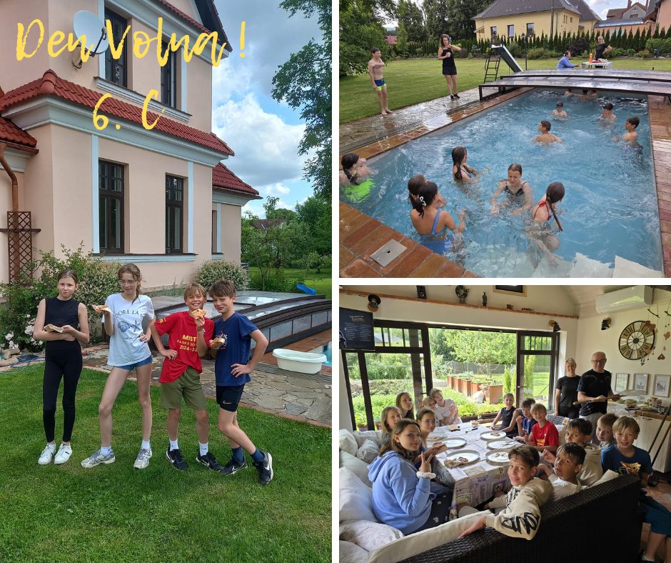 V pátek 20. června po uzavření známek jsme se odměnili a vyrazili hned ráno po cyklostezce kolem řeky Ostravice na Pržno na krásnou rodinnou zahradu. Místo nás přivítalo příjemným stínem stromů, různými herními prvky jako je zipline, slackline a hlavně krásným modrým bazénem. Všechno jsme řádně odzkoušeli a po koupání přišel čas na občerstvení – pravá italská pizza!