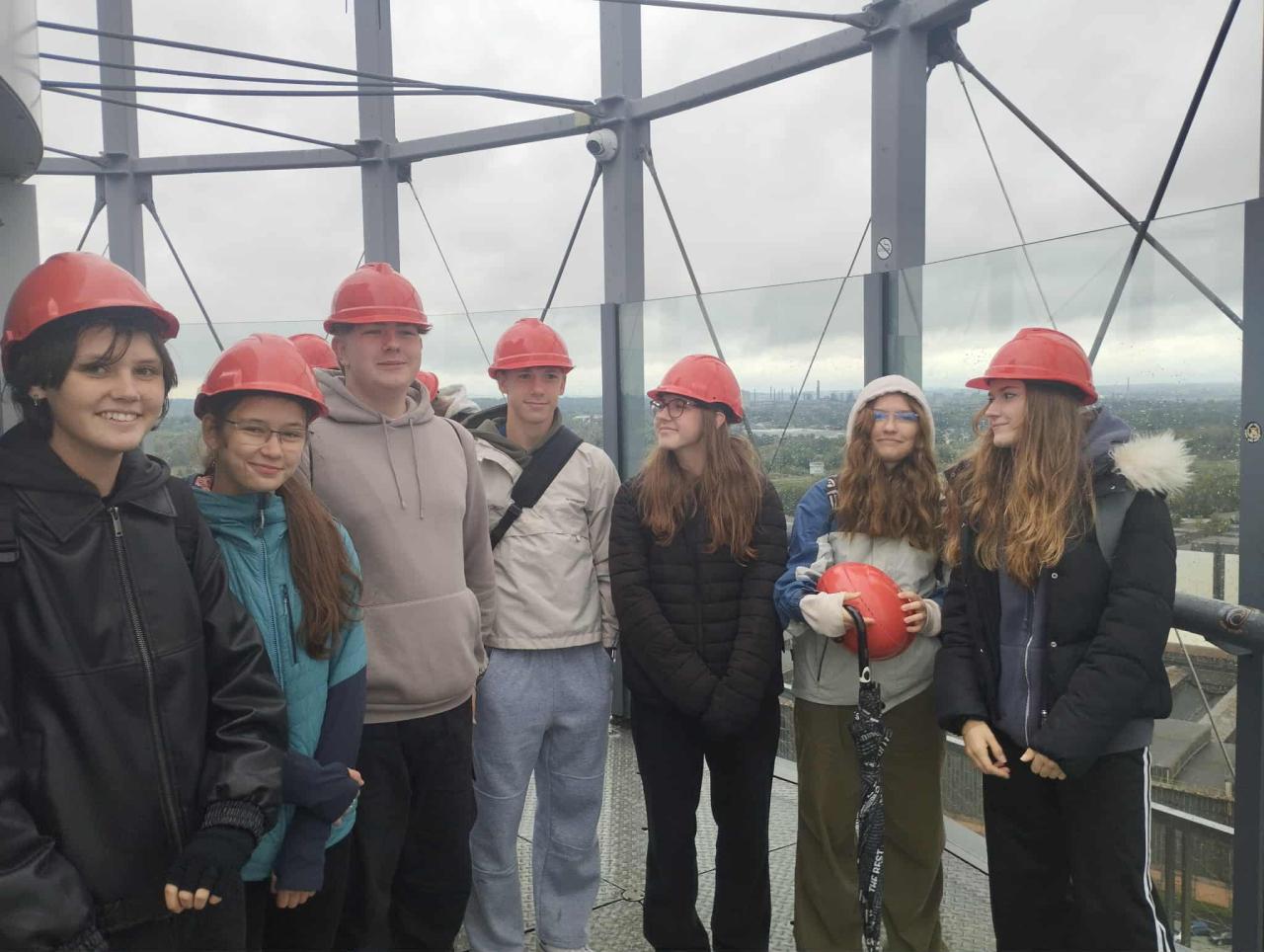 Velkým zážitkem byla jízda skipovým výtahem, který kdysi sloužil k dopravě surovin do pece. Tentokrát jsme se jím ale svezli my – a to téměř až na vrchol pece. Poslední část cesty jsme absolvovali pěšky po kovových schodech, až jsme se dostali na samotný vrchol ve výšce přes 60 metrů. Viděli jsme nejen celou Dolní oblast Vítkovic, ale i panorama Ostravy a jejího okolí.