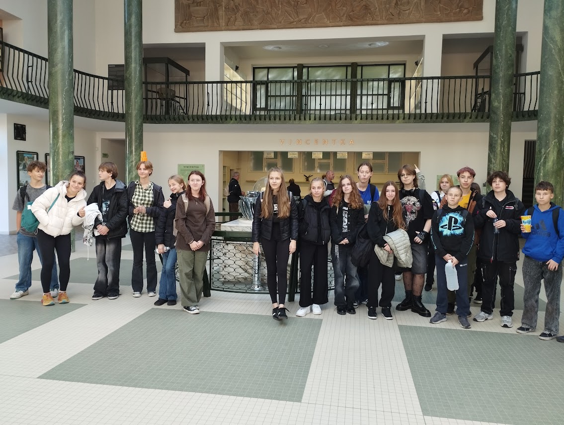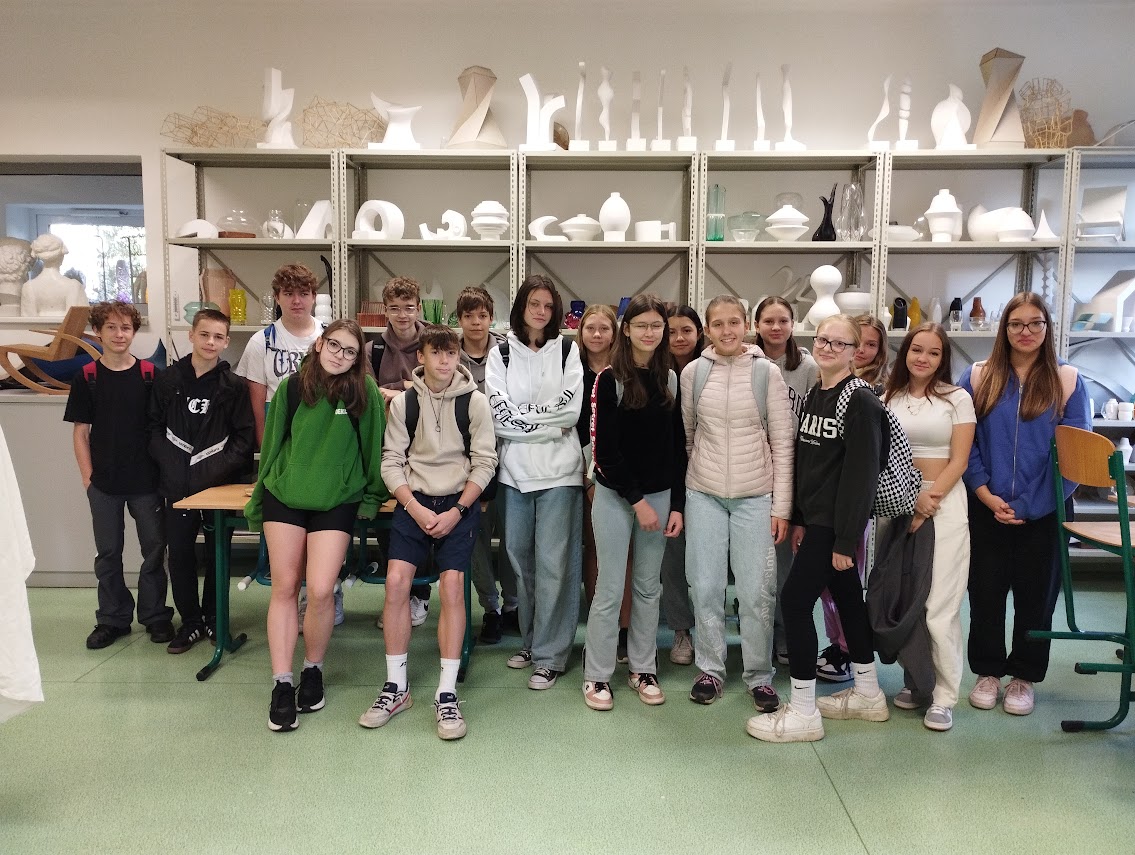 Naše první zastávka byla ve Střední škole sklářské ve Valašském Meziříčí, kde se žáci dozvěděli vše o výrobě skla. První část exkurze byla ve škole, kde jsme mohli vidět učebny a různé práce žáků. Pak jsme se přesunuli do dílny. Nejzajímavější byly pece, kde se sklo taví a pak i fouká. Měli jsme možnost vidět výrobu sklenic a vánočních zvonků.