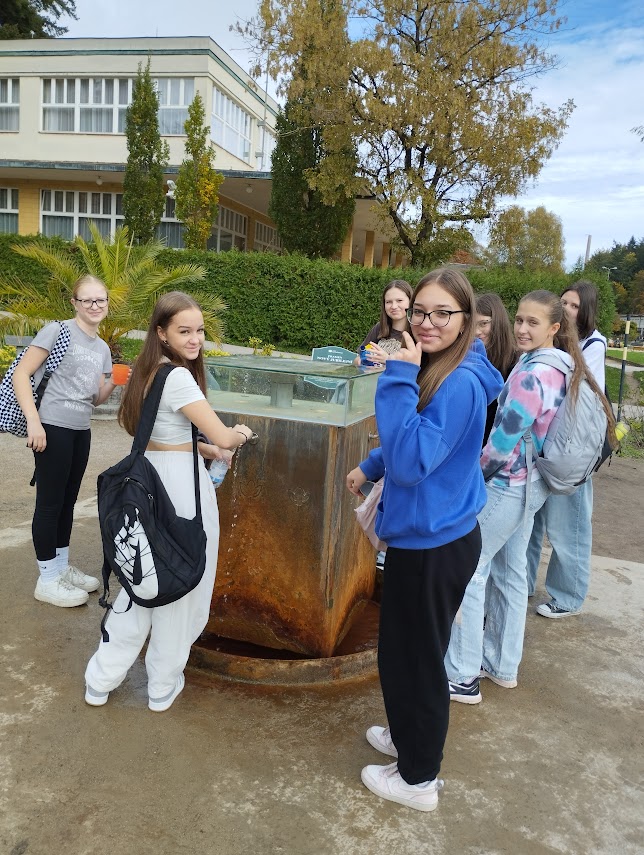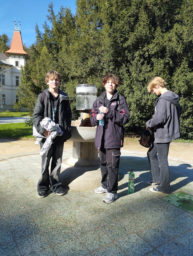 Pak naše exkurze pokračovala do Luhačovic, kde se žáci rozdělili do skupinek a obcházeli jednotlivé prameny se svými vyučujícími. U každého pramene jsme odebrali vzorky, které jsme zkoumali ve škole. V hodinách chemie jsme pak srovnávali množství solí obsažené v každém prameni, měřili jsme hustotu minerálních vod, pH a sledovali rozpustnost saponátu v jednotlivých vzorcích. V lázeňském městě jsme samozřejmě měli i rozchod a mohli jsme ochutnat výtečné lázeňské oplatky.