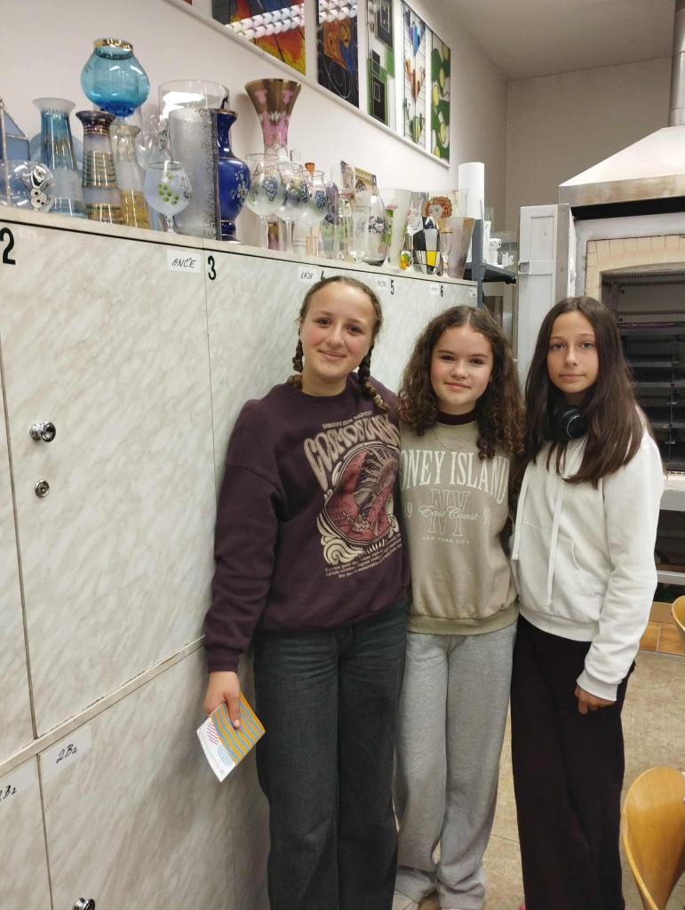Naše první zastávka byla ve Střední uměleckoprůmyslové škole sklářské ve Valašském Meziříčí. Tady jsme se dozvěděli nejen, jak se sklo vyrábí, ale i jak se s ním dále pracuje až po jeho konečnou úpravu. Nejzajímavější byly asi sklářské pece u kterých si někteří žáci mohli vyzkoušet i foukání skla.