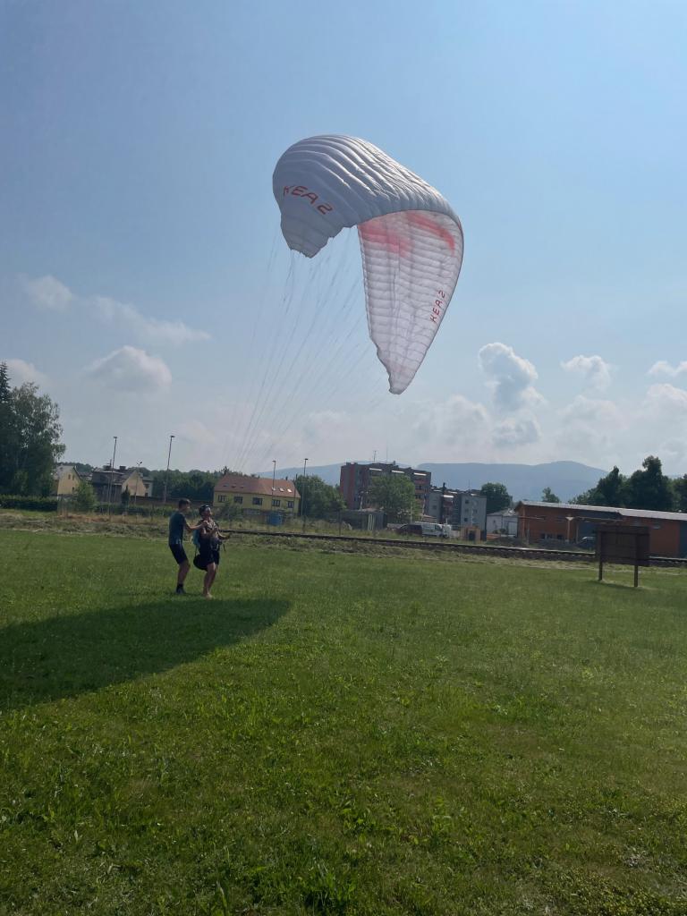 Firmou nás provedla mistrová paní Srubková, která velmi poutavě vyprávěla o složitém procesu výroby padáku od stříhání látky až po kontrolu, zda je padák v pořádku. Ve výrobně jsme viděli řadu drahých a kvalitních strojů, které místním zaměstnancům ulehčují práci. Pořád je ale při výrobě klíčová poctivá a precizní práce místních zaměstnanců, která všem nadšencům pozorování krajiny z výšky zajistí bezpečný let i návrat na pevnou zem. Žáci si díky lidem, kteří zde pracují mohli vyzkoušet také, jak se sedí v padákovém sedáky a díky příznivému větru si Tonda Kutálek otestoval řízení padáku na zemi. Ve výrobně jsme strávili 90 skvělých minut a odnesli jsme si i drobné dárečky. Moc děkujeme za milé přijetí.
