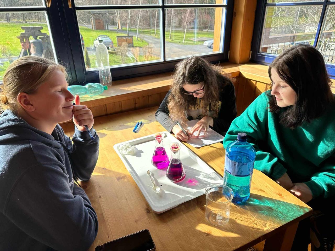 Celé dopoledne i odpoledne je čekalo mnoho zajímavých pokusů, které byly hlavně zaměřeny na práci s ledem, sněhem a suchým ledem. Ve fyzice žáky zaujala regelace ledu, duhové mléko, povrchové napětí vody, nehořlavý kapesník a papír. V chemii zvítězil suchý led a tekutý dusík. Mezi další zajímavé pokusy patřili faraonovi hadi, výroba octových raket, výroba sopky, hoření kationtů kovů a výroba kyslíku. Žáci byli rozděleni do skupinek, aby si mohli sami všechny pokusy vyzkoušet. Po večeři pak pokračovalo pásmo pokusů v kuchyni. Tam si žáci vyzkoušeli smaženou zmrzlinu, výrobu ledové tříště, flambované palačinky a denaturaci bílkovin. Všem žákům se vzdělávací pobyt moc líbil.
