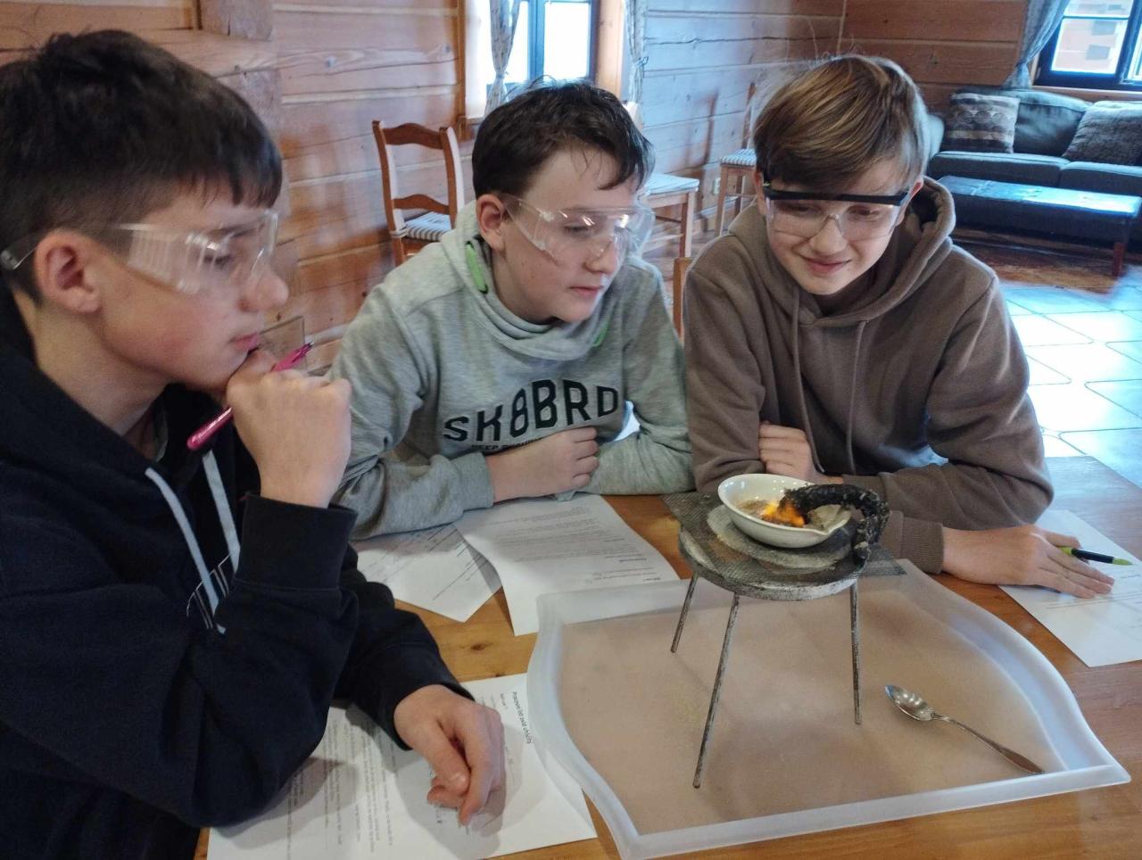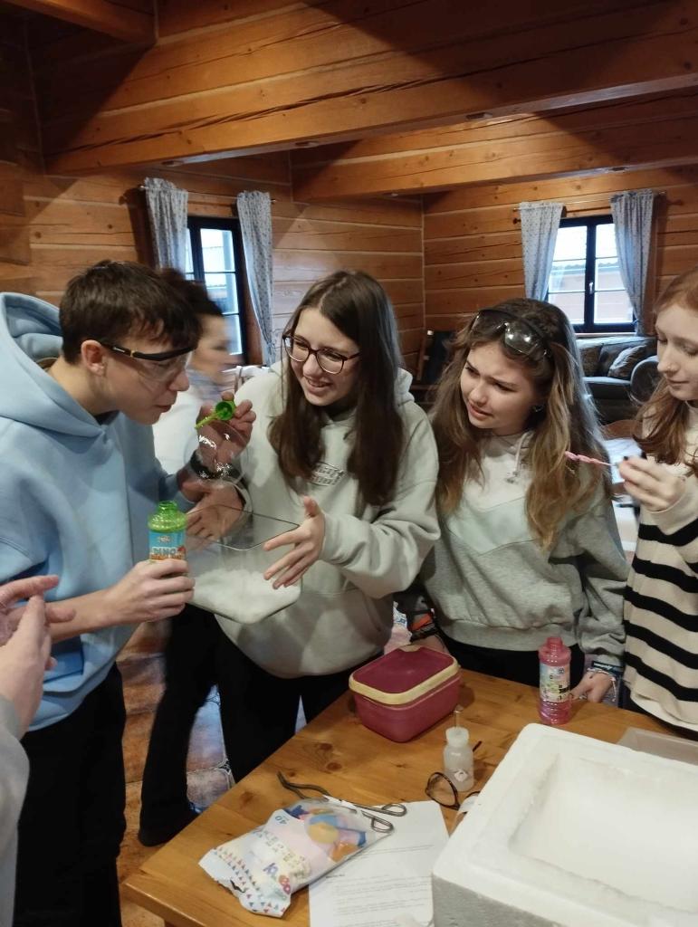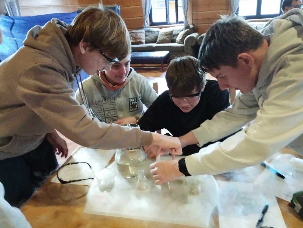 Celé dopoledne i odpoledne je čekalo mnoho zajímavých pokusů, které byly hlavně zaměřeny na práci s ledem, sněhem a suchým ledem. Ve fyzice žáky zaujala práce s ledem, duhové mléko, povrchové napětí vody, nehořlavý kapesník. V chemii zvítězil suchý led a tekutý dusík. Mezi další zajímavé pokusy patřili Faraonovi hadi, octové rakety, výroba sopky a výroba kyslíku. Venku jsme pak vyzkoušeli bengálské ohně a jiskřící cestičku. Žáci byli po celou dobu rozděleni do skupinek, aby si mohli sami všechny pokusy vyzkoušet. Po večeři pak pokračovalo pásmo pokusů v kuchyni. Tam si žáci vyzkoušeli smaženou zmrzlinu, výrobu ledové tříště, flambované palačinky a denaturaci bílkovin. Všem žákům se vzdělávací pobyt moc líbil.