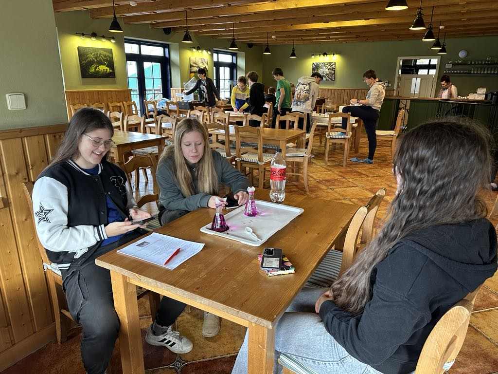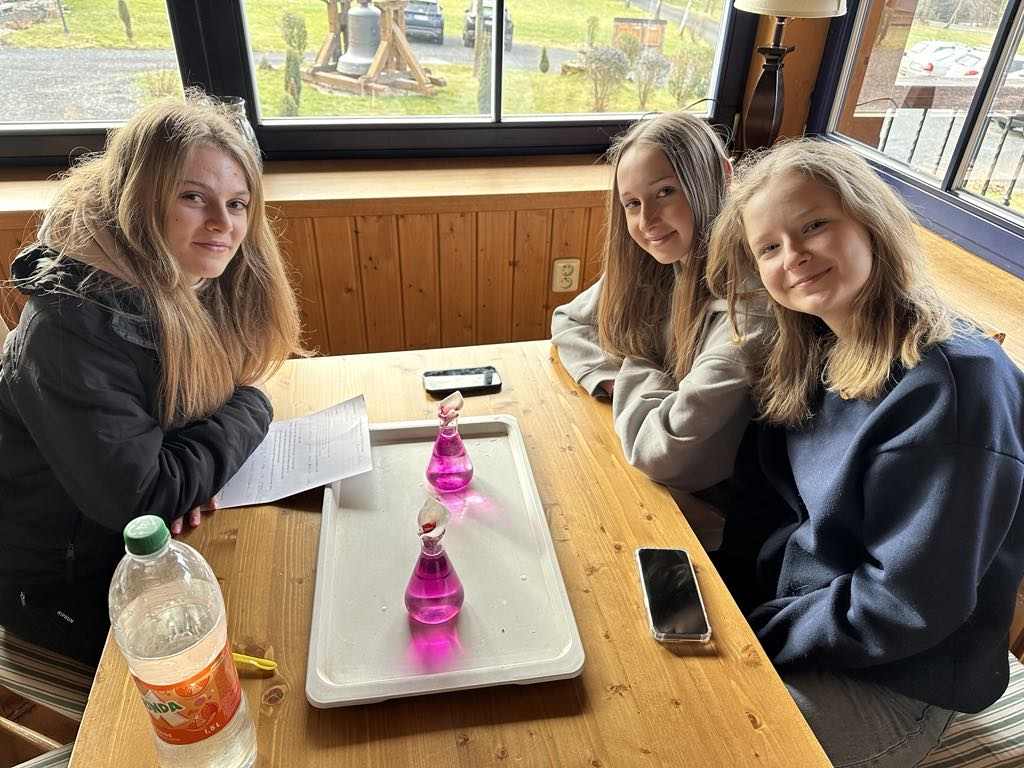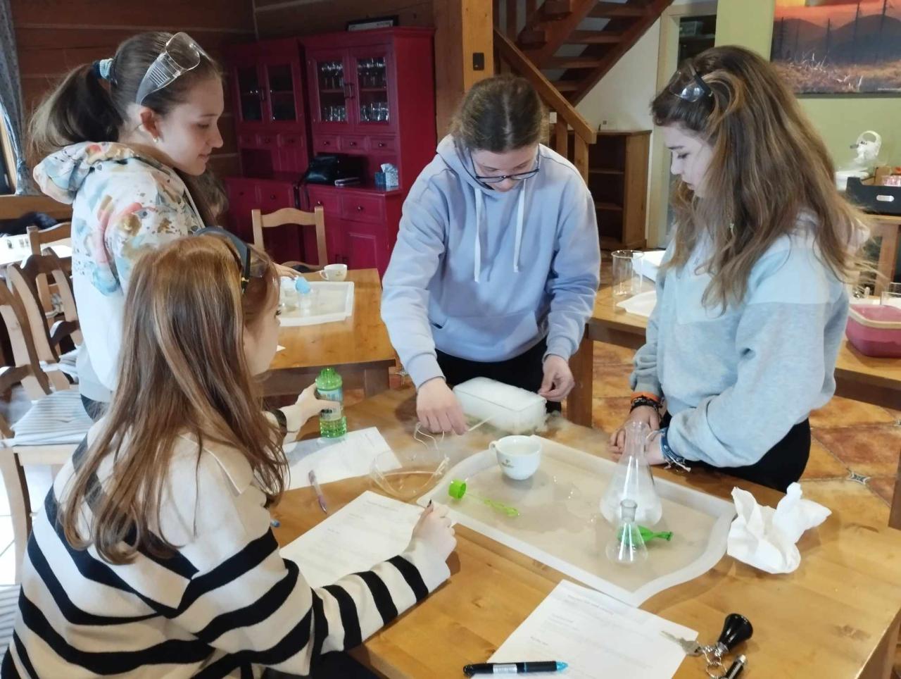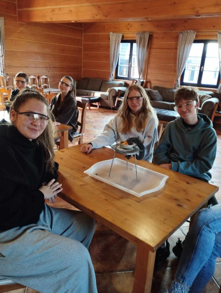 Celé dopoledne i odpoledne je čekalo mnoho zajímavých pokusů, které byly hlavně zaměřeny na práci s ledem, sněhem a suchým ledem. Ve fyzice žáky zaujala práce s ledem, duhové mléko, povrchové napětí vody, nehořlavý kapesník. V chemii zvítězil suchý led a tekutý dusík. Mezi další zajímavé pokusy patřili Faraonovi hadi, octové rakety, výroba sopky a výroba kyslíku. Venku jsme pak vyzkoušeli bengálské ohně a jiskřící cestičku. Žáci byli po celou dobu rozděleni do skupinek, aby si mohli sami všechny pokusy vyzkoušet. Po večeři pak pokračovalo pásmo pokusů v kuchyni. Tam si žáci vyzkoušeli smaženou zmrzlinu, výrobu ledové tříště, flambované palačinky a denaturaci bílkovin. Všem žákům se vzdělávací pobyt moc líbil.