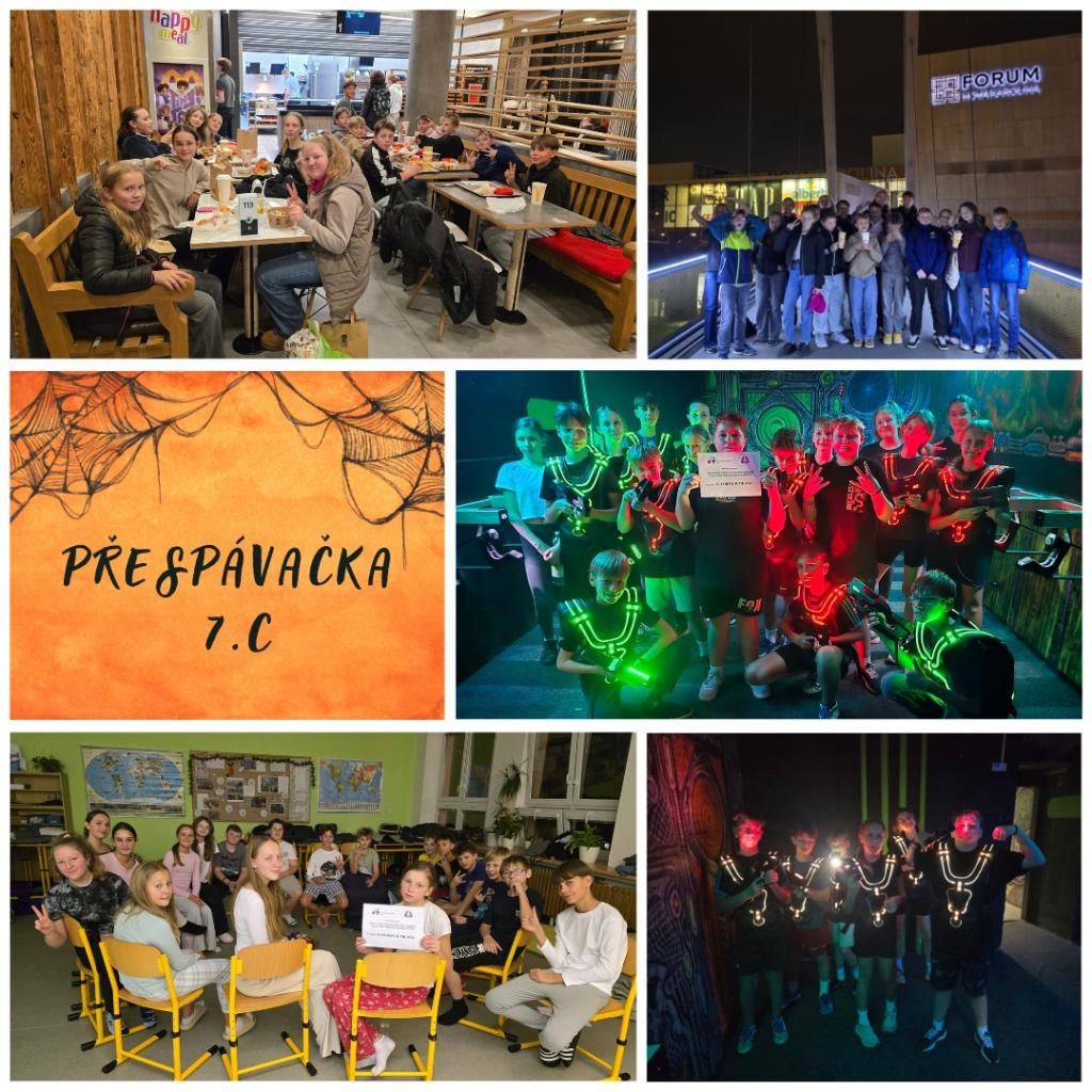 Večer pak pokračoval ve škole, kde si třída užila hlavně povídání a společný čas ve třídě. Když se rozbalily spacáky a zhasla světla, tak nastala ta pravá přespávačka s typickým dlouhotrvajícím šuměním šeptajících hlasů, ještě pořád si bylo tolik co říct...:-). Páteční ráno bylo sice pro všechny trochu náročné na vstávání, ale společný zážitek stál za to.