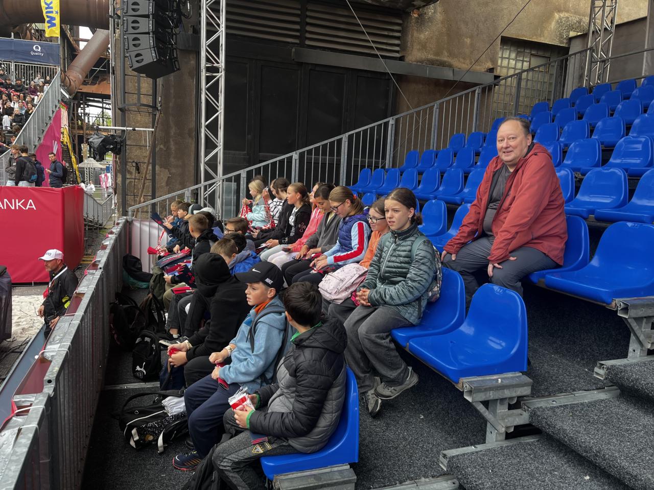 Výjimečného turnaje, který se koná v lokalitě bývalého průmyslového areálu Dolních Vítkovic, se v roli fanoušků zúčastnila ve čtvrtek 29. května 2025 i naše třída V. A. Díky odměně v podobě volných VIP vstupenek za účast ve výtvarné soutěži soutěži s názvem „HŘIŠTĚ FANTAZIE“ jednoho ze sponzorů turnaje, firmy Primirest, měli možnost vidět plážový volejbal elitní světové úrovně a zažít úžasnou atmosféru volejbalových zápasů. Tribuny se otřásaly v základech, fanoušci skandovali a buráceli při každém podařeném bloku. Na první pohled nesourodé spojení studených vysokých pecí se sportem, typickým spíše pro teplou pobřežní krajinu, fungovalo opravdu velmi dobře. Děti si tento beachvolejbalový svátek v Ostravě naplno užily nejen fanděním na tribunách, ale i aktivitami ve fanzóně a už nyní se těší na příští ročník.