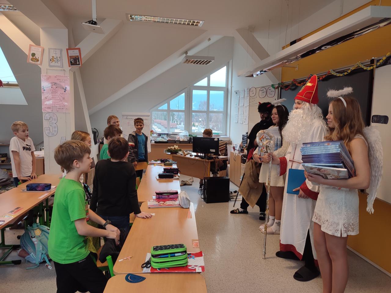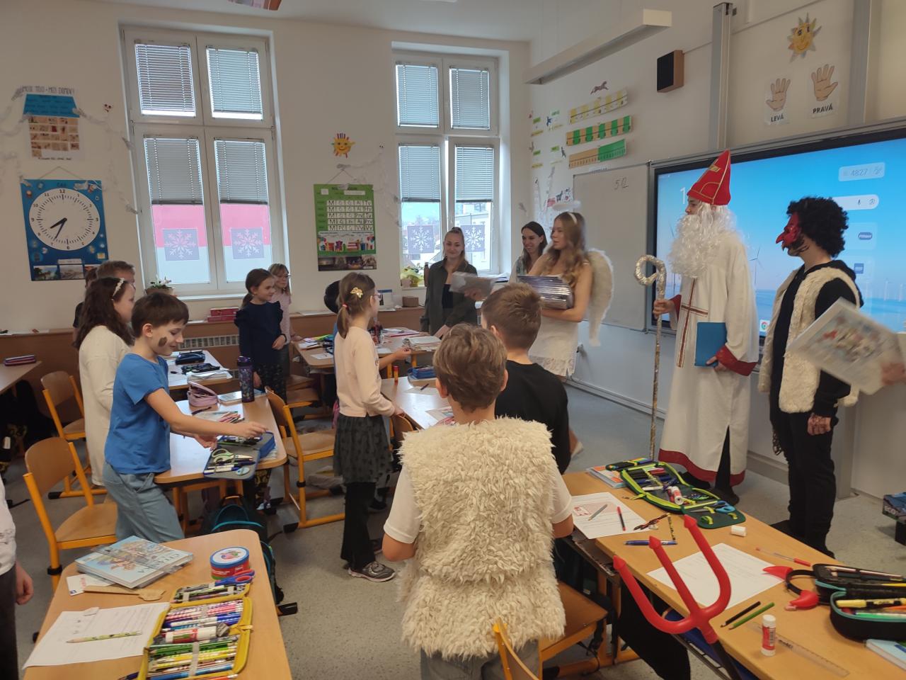 Děti dostaly malé dárečky nebo sladkosti osobně od Mikuláše a jeho pomocníků. Děti s radostí uvítaly tuto vzácnou návštěvu a recitovaly básničky, zpívaly písničky. Některé třídy si dokonce připravily speciální program, aby Mikuláše, čerty a anděly potěšily. Hříšníci slíbili, že se polepší.