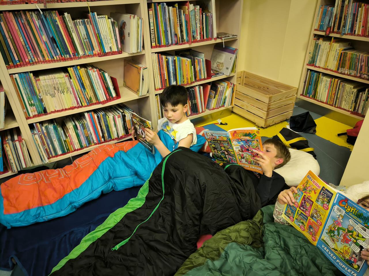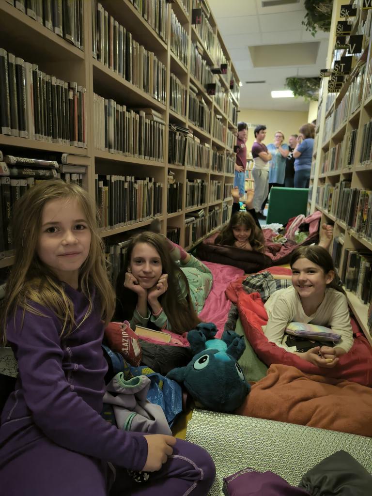 Tato akce připomíná dílo a život Hanse Christiana Andersena. Této významné akce se zúčastnily i některé děti naší školy a nocovaly 5. dubna 2024 v knihovně. V průběhu večera si povídali o dánském spisovateli Hansi Christianovi Andersenovi, luštili křížovky, hráli hry, povídali si o Petru Sísovi, Eduardu Petiškovi a plnili úkoly na šesti stanovištích. Také hledali poklad, který obsahoval upomínkové předměty a drobné sladkosti pro zúčastněné děti. Nesměla chybět večeře od maminek a potom už šup do spacáků. Ráno se děti podepsaly do pamětní knihy a líčily rodičům všechno, co v knihovně zažily.