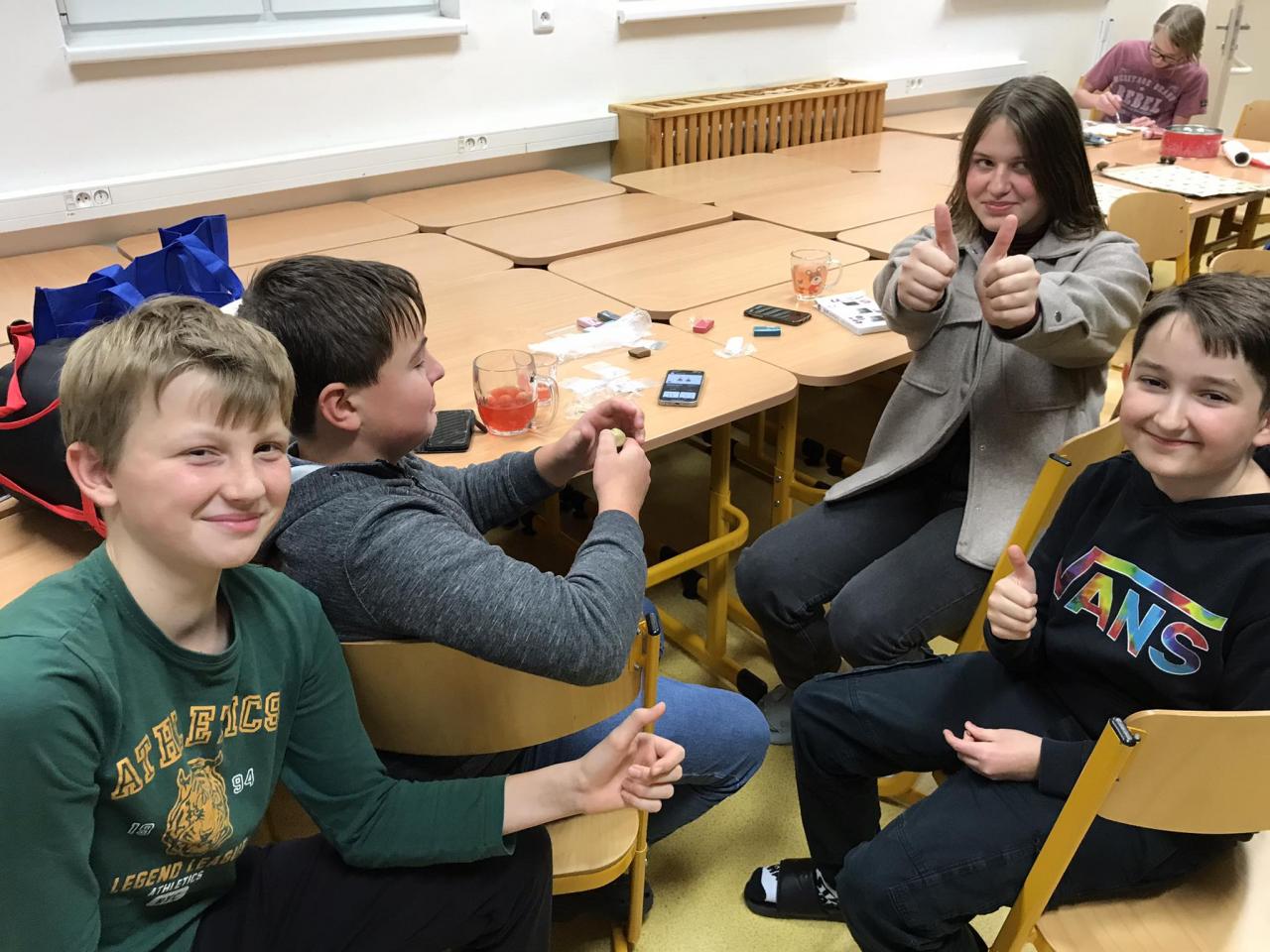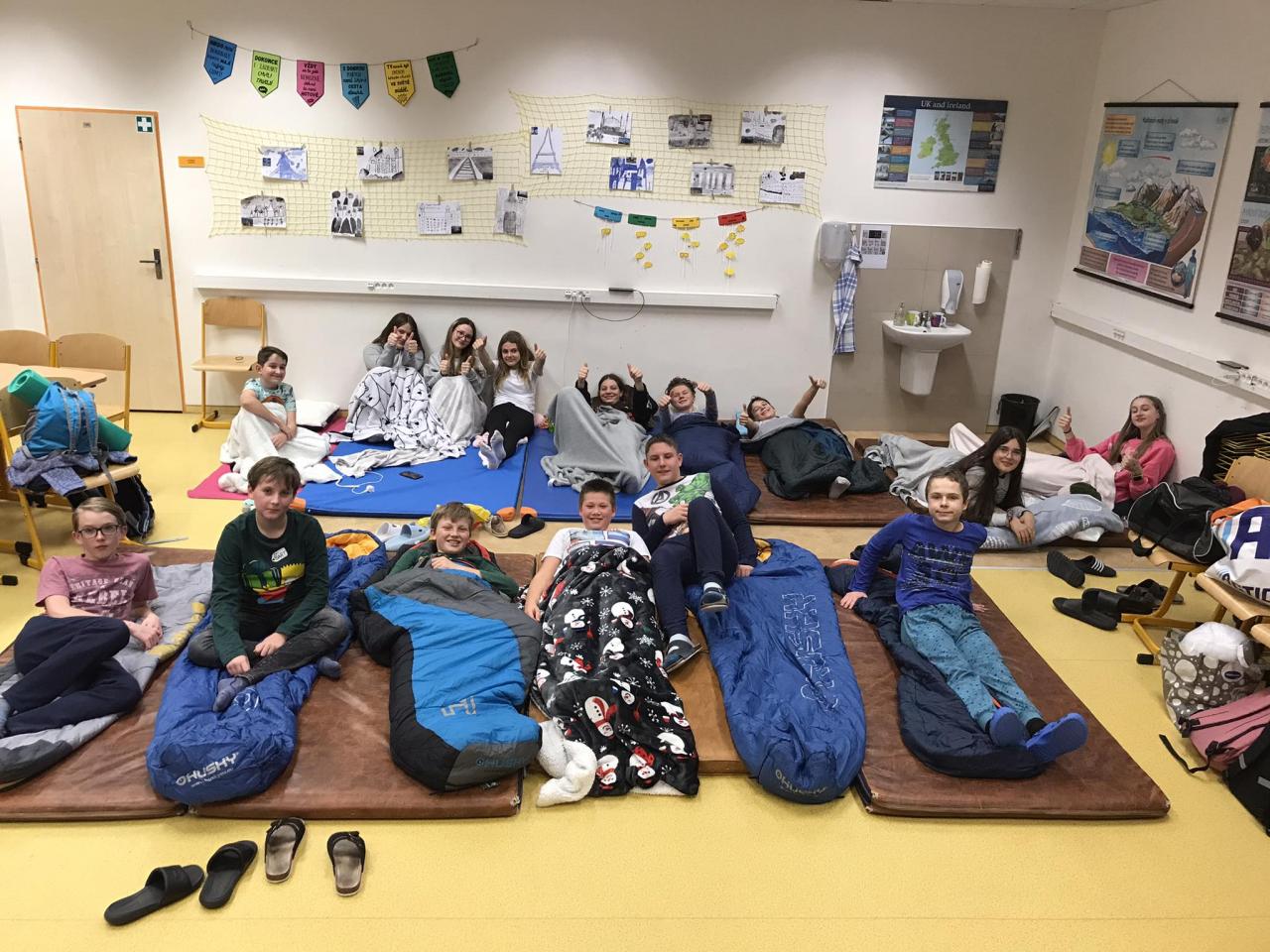 Po práci následoval zasloužený odpočinek. Nejprve jsme využili volné tělocvičny a na chvíli si zahráli ringo. Vyčerpaní rychlou hrou si žáci dali večeři a pod rouškou tmy si zahráli schovávanou v šatnách. Na dobrou noc jsme se podívali na film a šli spát, protože ráno se brzy vstávalo do školy. Jarmark dopadl skvěle, naše práce a snahy taky nebyly zbytečné.