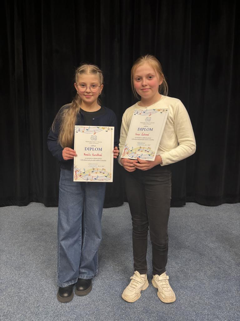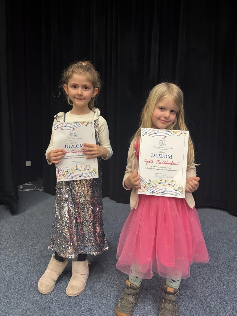 V kategorii druháků a třeťáků za naši školu soutěžily Natálka Pavlisková a Eliška Holubová, které si vyzpívaly umístění ve zlatém a bronzovém pásmu.