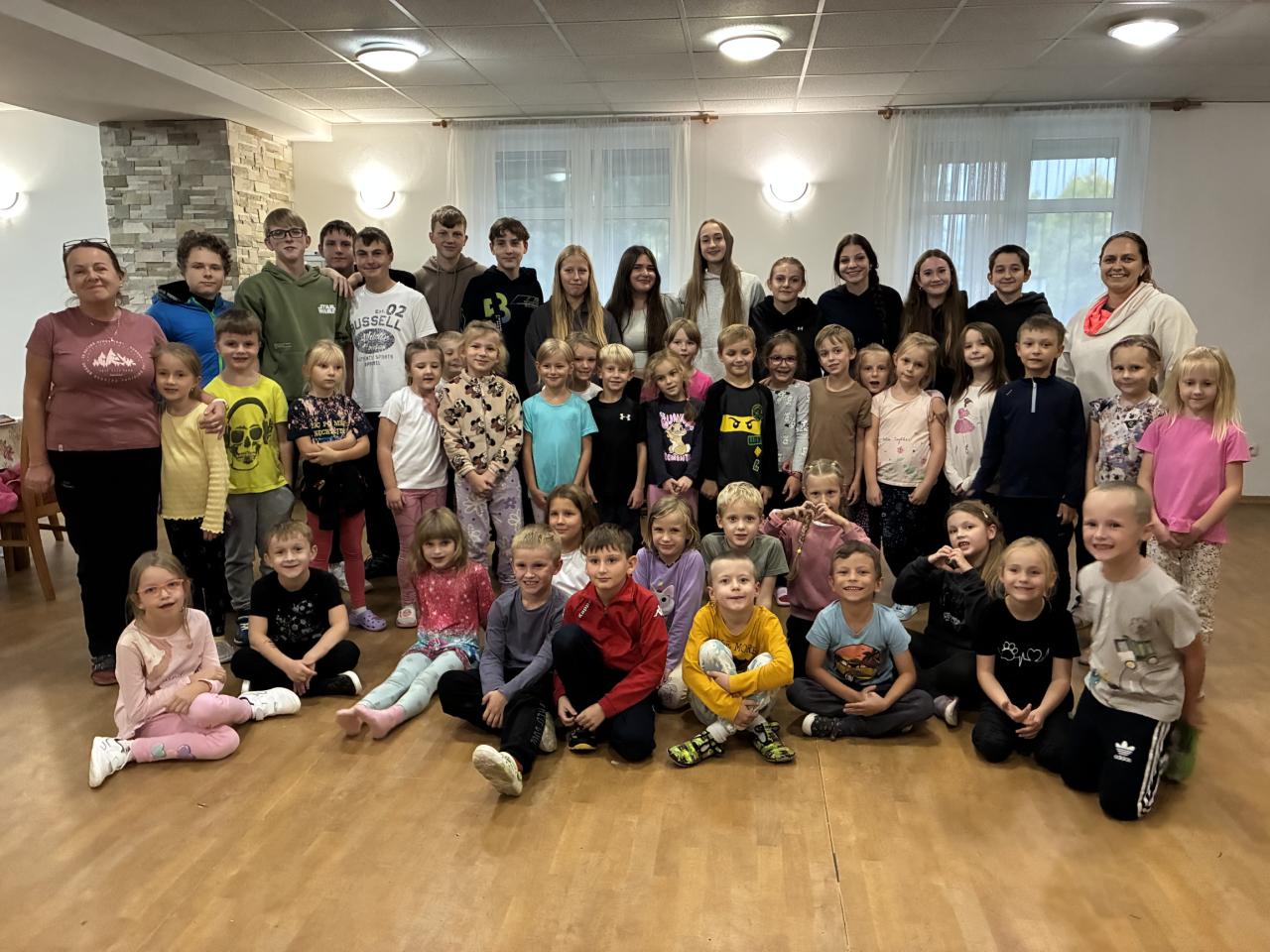 Adaptační pobyt jsme zahájili 23. září ráno programem ve škole. Začal plněním prvních úkolů ve třídě s paní učitelkou a v tělocvičně společně s paní Chýlek. Už známe jména svých spolužáků, orientujeme se v prostředí školy a umíme si společně zahrát hru.