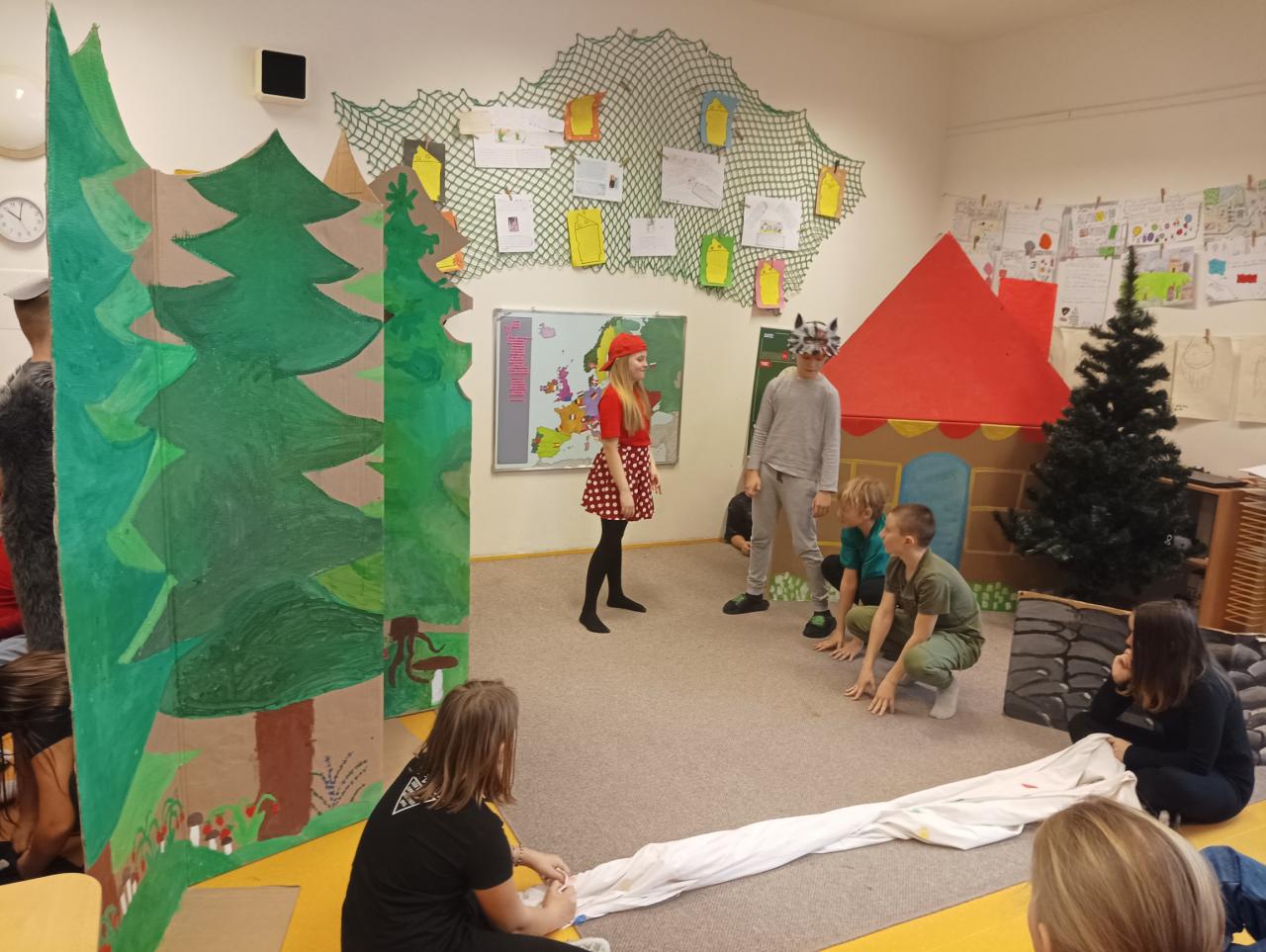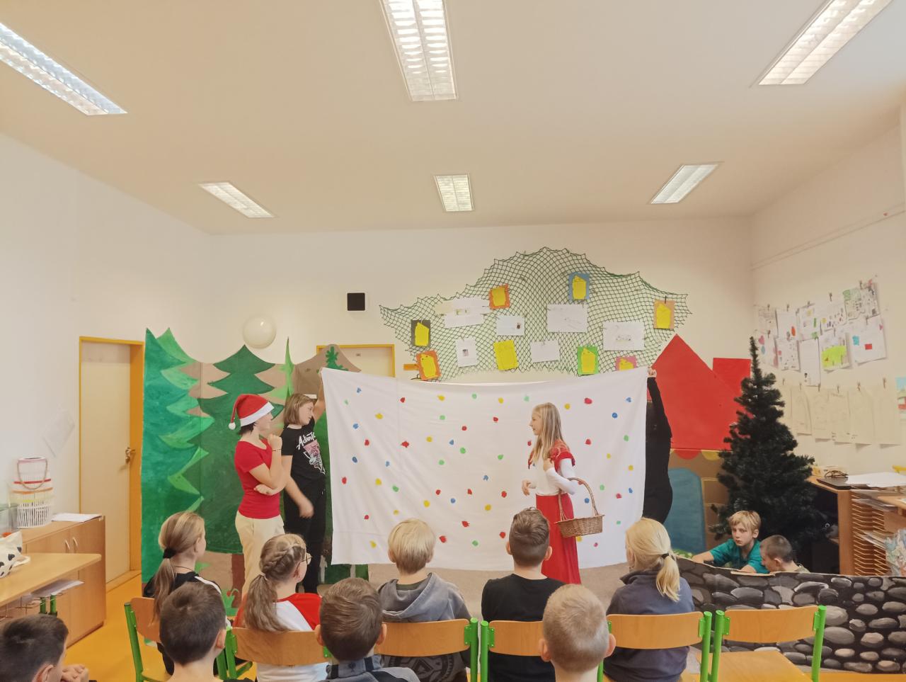 S humorem a nadsázkou přepracovali klasickou pohádku O Červené Karkulce do moderní podoby. Jejich interpretace byla plná vtipných dialogů, nečekaných zvratů a především radosti z hraní. Žáci prvního stupně sledovali představení s nadšením a smíchem, stejně tak rodiče, kterým tak páťáci zpříjemnili třídní schůzky.
