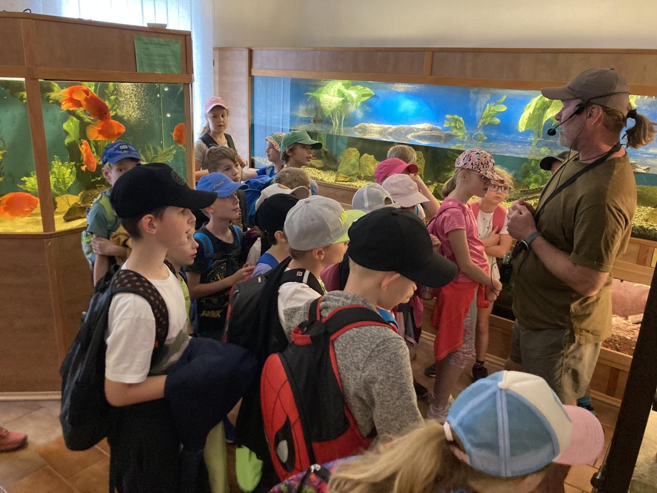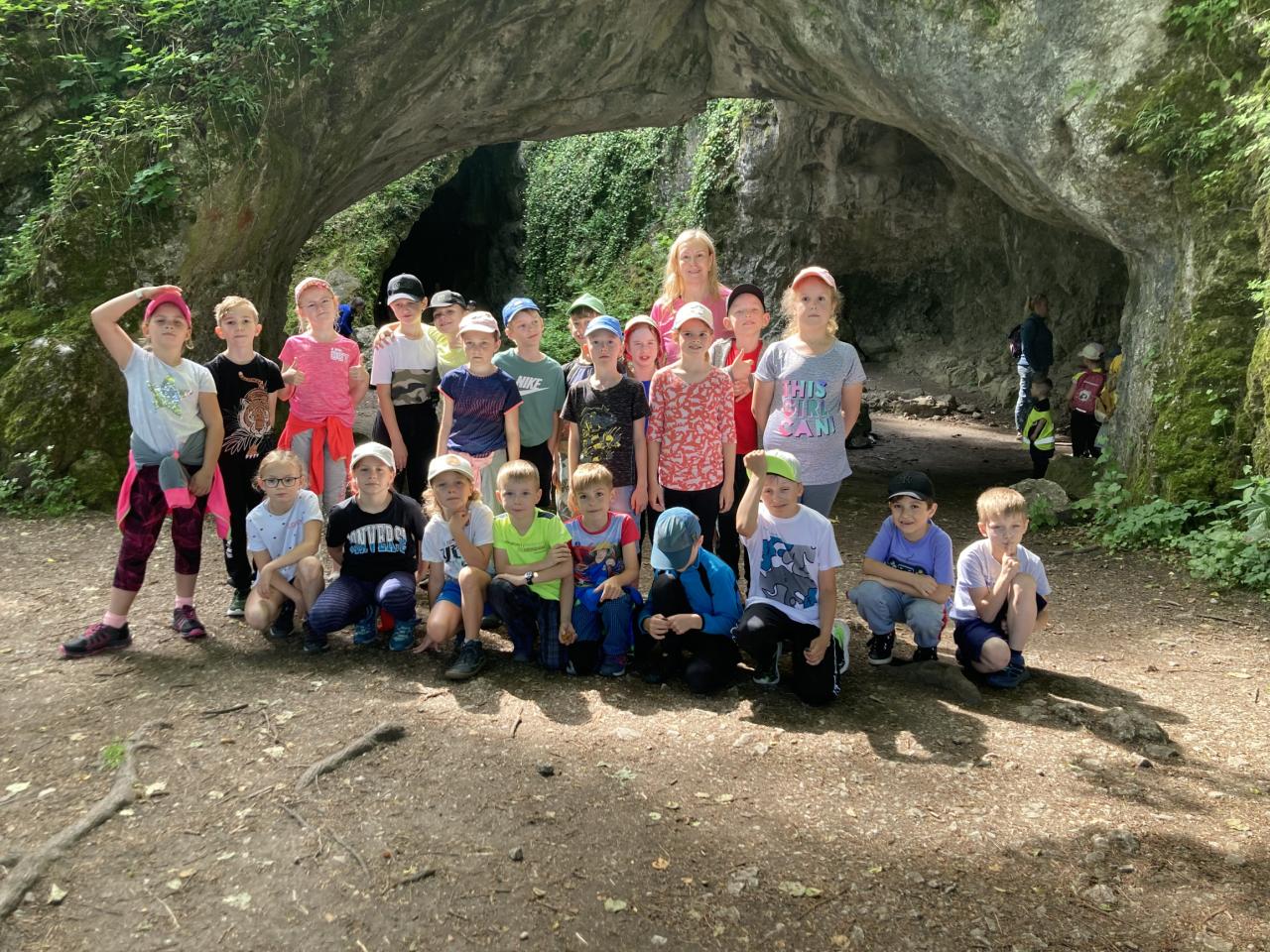 Naše první cesta vedla k jeskyni Šipka, která je nejznámějším krasovým útvarem štramberského krasu. Tam jsme posvačili a dozvěděli se spoustu zajímavých informací o pravěkých lidech a zvířatech. Dokonce jsme měli velké štěstí a uviděli jsme jednoho neandrtálce pobíhat po jeskyni. Po prozkoumání jeskyně jsme vyrazili na štramberské náměstí, kde nás čekalo další překvapení. Navštívili jsme minizoo s velmi zajímavou přednáškou o exotických zvířatech. Přednáška byla spojena s krmením zvířat a společným focením. Byl to pro nás opravdu veliký zážitek. Blížilo se poledne a s ním i krátký rozchod. Mohli jsme si nakupit nebo sníst oběd od maminek.