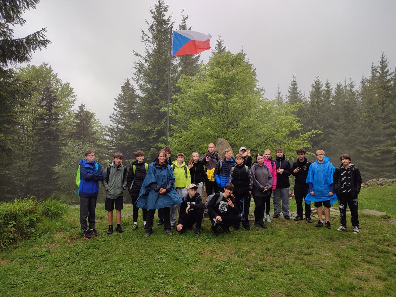 Někteří zdolávali kameny, kořeny a jiné záludnosti s velkou lehkostí, pro jiné to byl tužší oříšek, ale nakonec jsme se všichni sešli na vrcholku v restauraci. Po dalším vydatném jídle jsme se ubytovali v turistické chatě. Někteří se věnovali odpočinku uvnitř, ale většina kluků hrála bez ohledu na nepřízeň počasí a teenagerovskému věku na schovku.