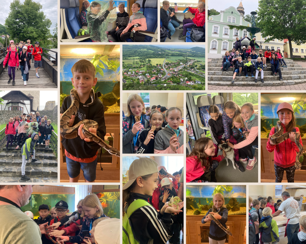 Naší první zastávkou byla Minizoo Aqua Terra, která nás nadchla svou pestrou sbírkou akvarijních i terarijních zvířat. Obdivovali jsme desítky druhů barevných tropických ryb, pozorovali jsme hady, ještěry i roztomilé drápkaté opičky. Celou prohlídku zpestřil poutavý a často humorný výklad doprovázený ukázkami krmení. A ti odvážnější z nás se dokonce mohli s některými zvířaty i „pomazlit“ – zážitek, na který jen tak nezapomeneme!