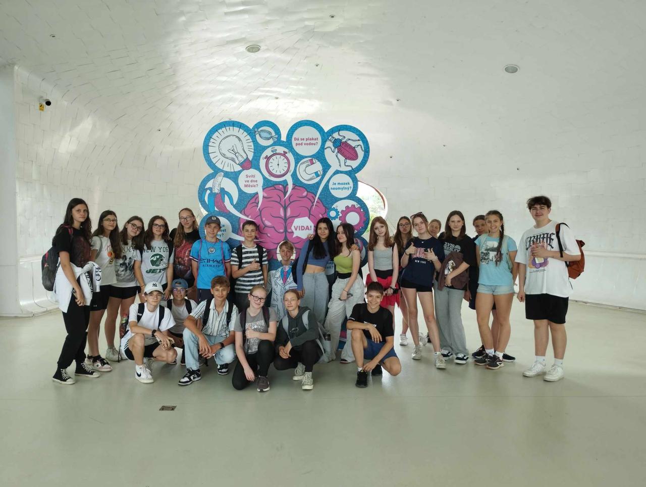 Do Brna jsme dorazili v 9 hodin ráno a ihned jsme se tramvají vydali do zábavního vědeckého parku VIDA u brněnského výstaviště. VIDA obsahuje spoustu interaktivních exponátů, díky kterým jsme mohli objevovat, jak funguje svět kolem nás. Mohli jsme rozpoutat vodní i vzdušné tornáda, v rotující místnosti jsme poznali účinky odstředivé síly, vypustili jsme horkovzdušný balón, vyzkoušeli jsme si kolo na laně a spoustu dalších zajímavých exponátů. Odpoledne jsme se přesunuli do brněnské ZOO a na závěr jsme si prošli centrum Brna. I když jsme se dostali domů až v pozdních večerních hodinách, výlet jsme si všichni užili.