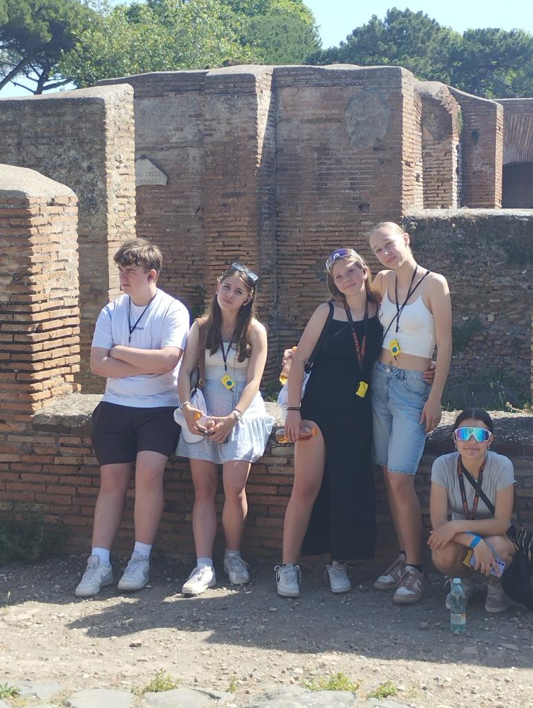 Druhou část výletu žáci strávili v Ostii, bývalém přístavním městě starověkého Říma. Návštěva archeologického areálu Ostia Antica všechny zaujala – zachovalé ulice, divadlo, lázně a domy poskytly autentický pohled do života Římanů před dvěma tisíci lety. Procházka mezi ruinami byla jako cesta časem.