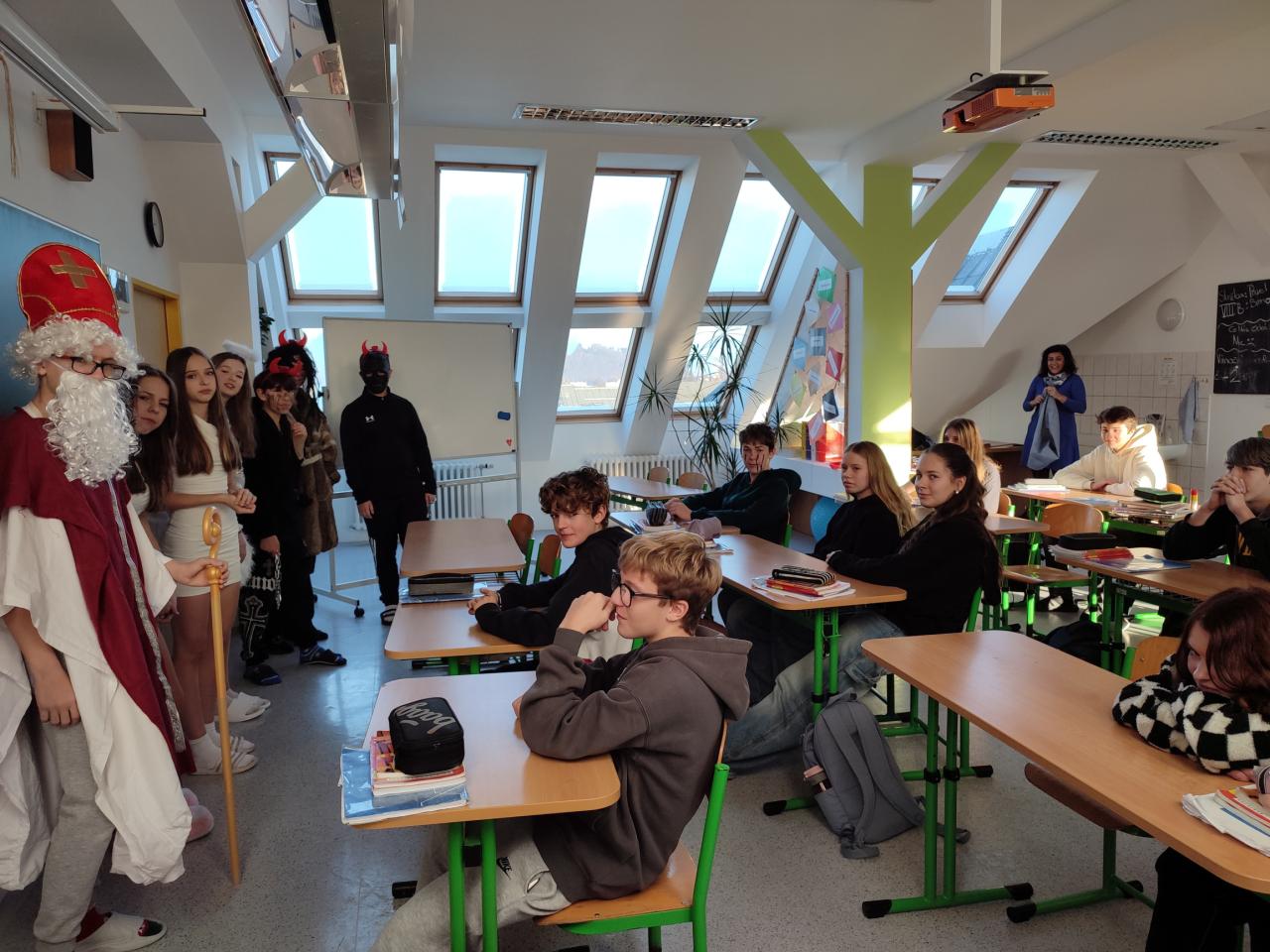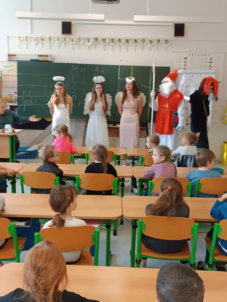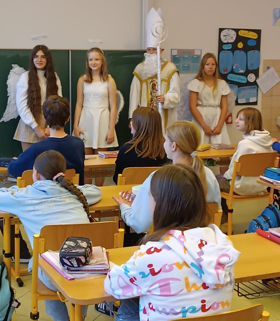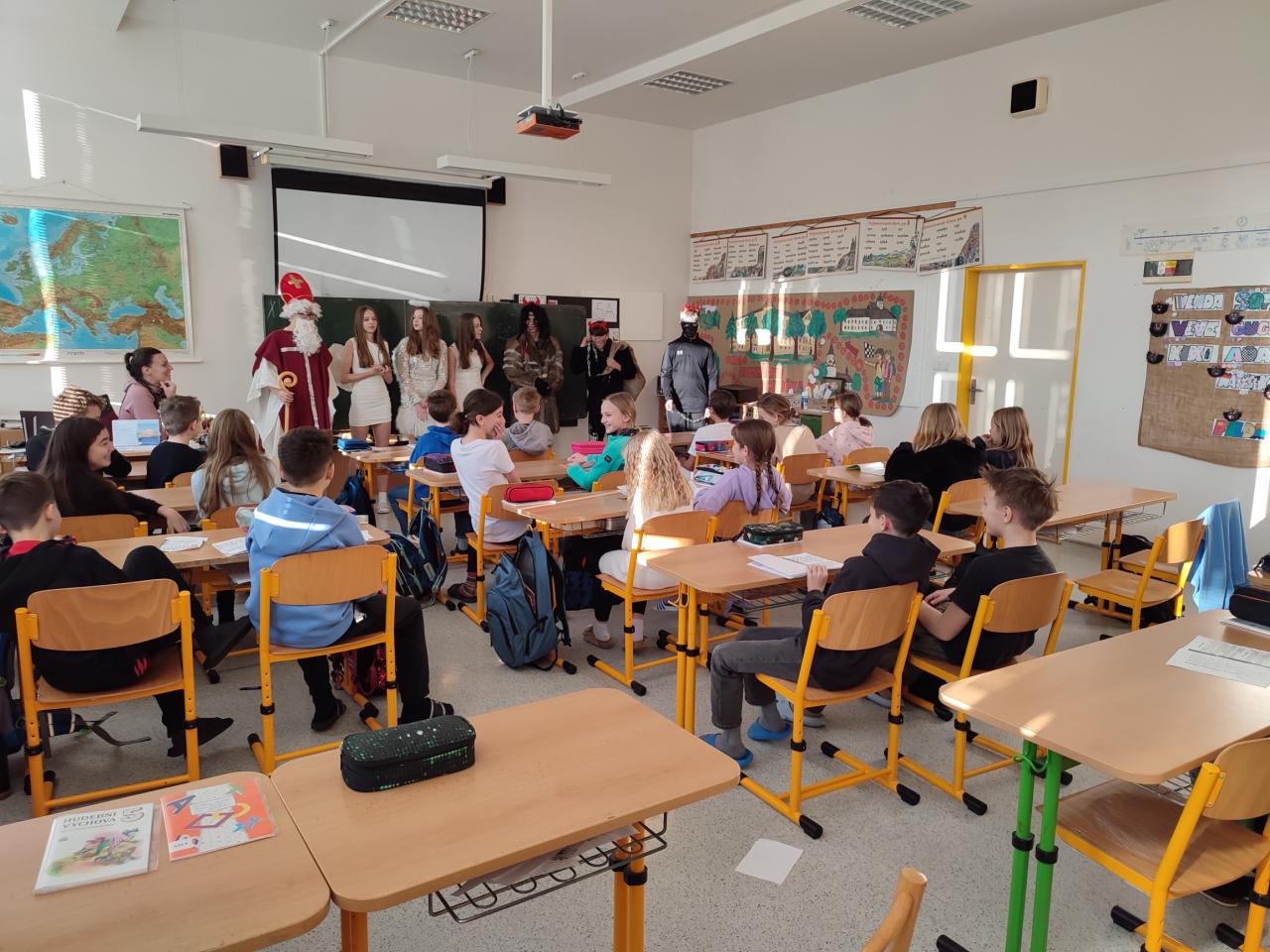 Svatý Mikuláš, čerti a andělé procházeli naší školou a navštívili třídy, aby dětem předali malé dárečky a sladkosti. Bylo krásné sledovat, jak děti recitovaly básničky a zpívaly písničky těmto návštěvníkům. Některé třídy měly dokonce připravený program přímo pro tuto vzácnou návštěvu. Všichni si akci velmi užili a vánoční atmosféra prostoupila celou školou.