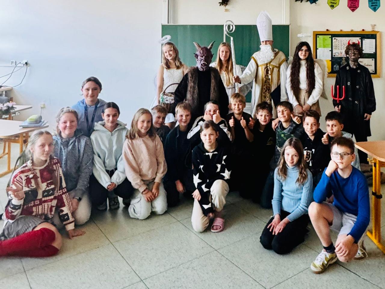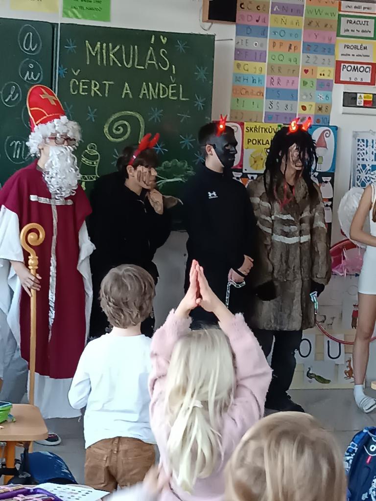 Svatý Mikuláš, čerti a andělé procházeli naší školou a navštívili třídy, aby dětem předali malé dárečky a sladkosti. Bylo krásné sledovat, jak děti recitovaly básničky a zpívaly písničky těmto návštěvníkům. Některé třídy měly dokonce připravený program přímo pro tuto vzácnou návštěvu. Všichni si akci velmi užili a vánoční atmosféra prostoupila celou školou.