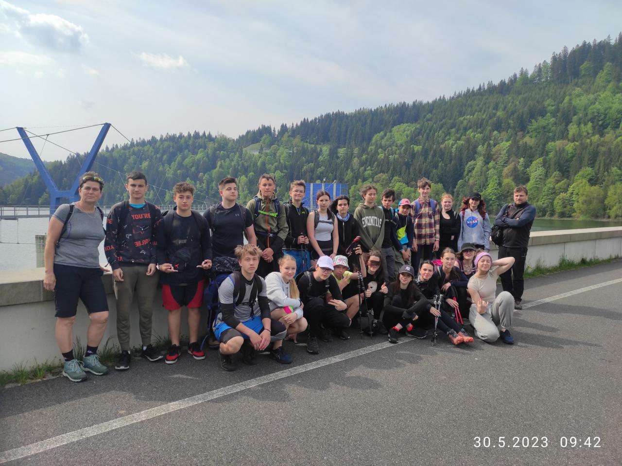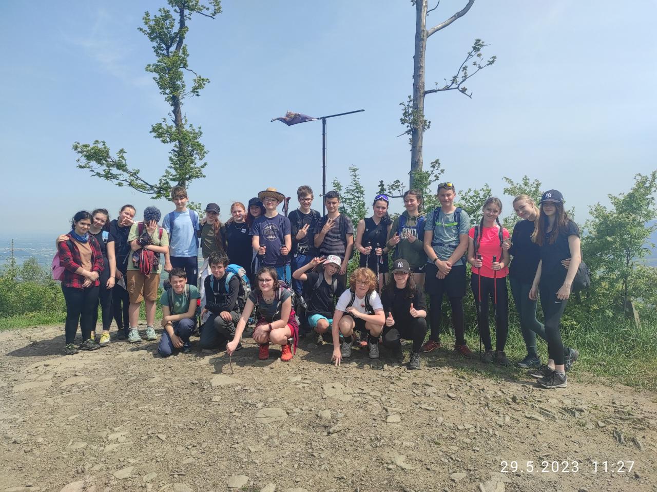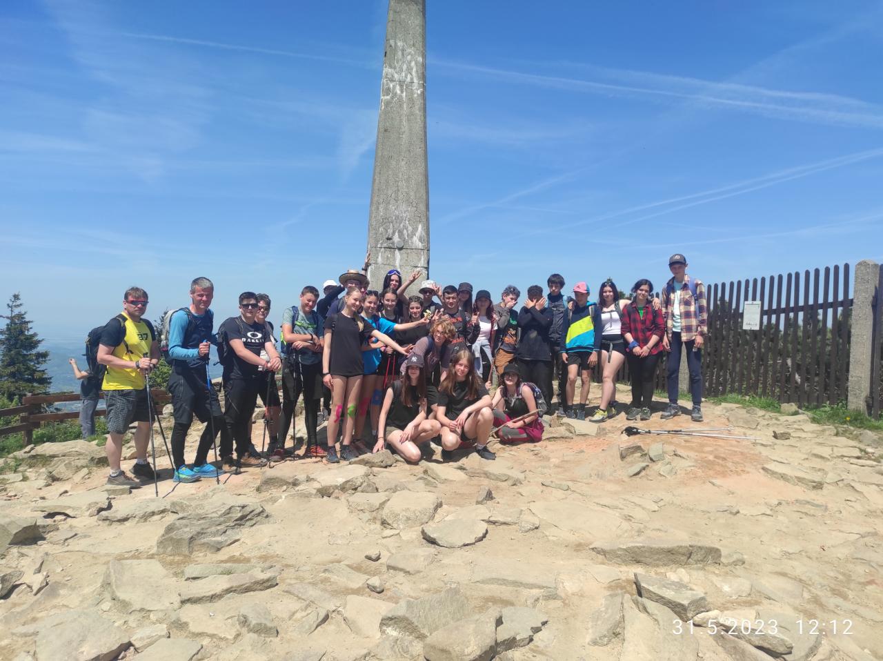 - Sraz byl ráno na vlakovém nádraží odkud jsme jeli vlakem do Kunčic p. O. Náš první cíl byl vrchol Skalka. Po chvilce chůze čekal turisty první úkol: vytvořit 3 týmy, vymyslet si svůj originální název a pomocí provázku se i jako tým spojit a zvládnout kousek trasy takto společně. Ani ne do dvou hodin chůze jsme byli na vrcholu a mohli si udělat par fotek. Následně jsem přes další vrchol Stanovec směřovali k dalšímu cíli a to Ondřejník. Po kratší pauze jsme sešli k Roubence, kde na týmy čekal sportovní závod „gladiátor race“ a přišel čas na zasloužený oběd. Po vyhodnocení soutěží jsme se vydali zpět do Frýdlantu n. O.