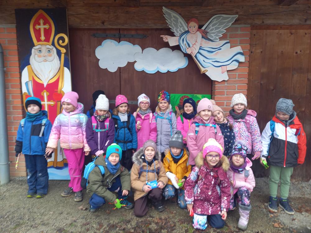 Cestou k chalupám potkáváme také bílou Lucku a Mikuláše s čertem a andělem. Hodný Mikuláš rozdával dětem sušené křížaly a povídal nám o tom, jaké stromy se na Valašku v dávných dobách sadily. Ve škole nás vítá přísný pan učitel a vypráví o tom, jak se dříve ve škole učilo. Od školy už pomalu scházíme dolů do údolí směrem k východu z muzea.