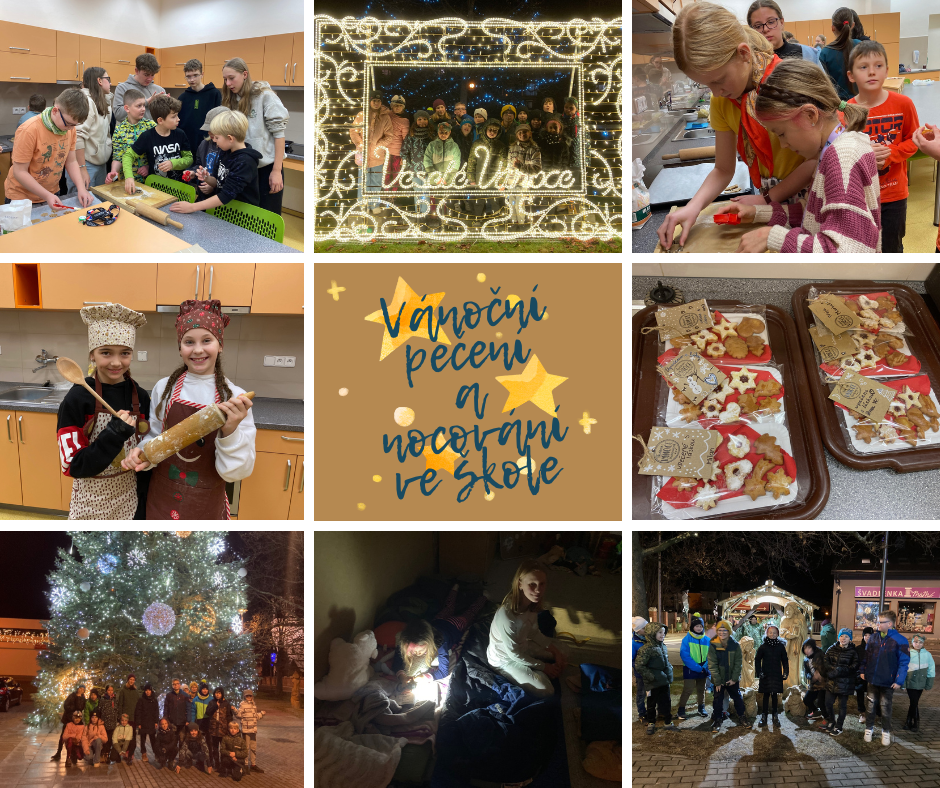 Do školy se vrátili okolo půl osmé, naladili se na Vánoce pohádkou, povídali si, tancovali, hráli hry a pak se už unavení zahrabali do svých provizorních pelíšků a užili si společné nocování ve škole.