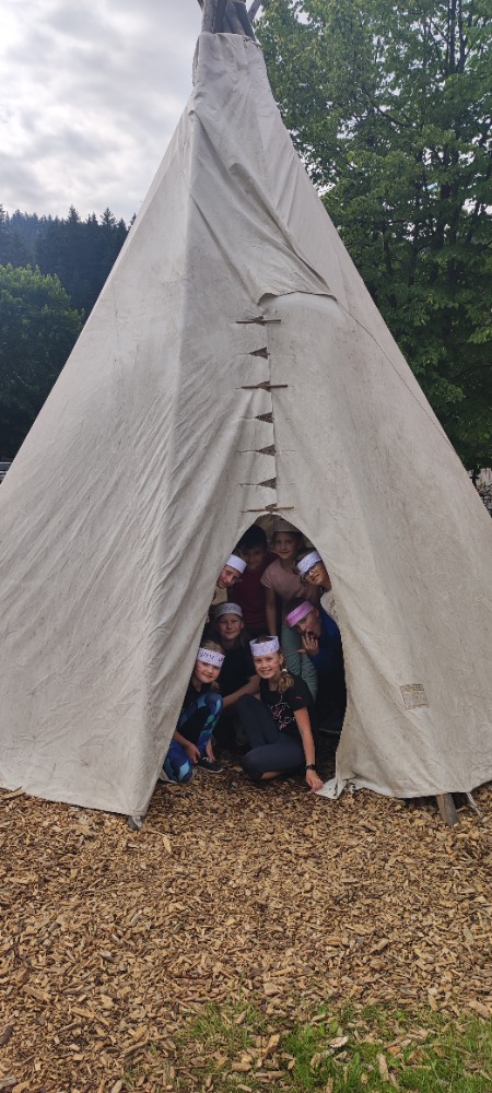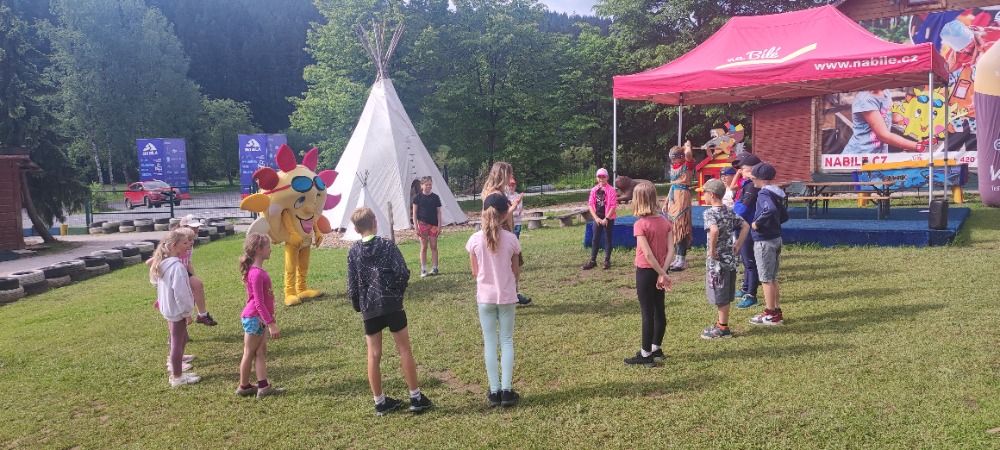 Počasí nám přálo, a tak jsme se těšili na objednaný program INDIÁNI, který obsahoval mnoho zajímavých a poučných úkolů, které děti plnily. Při dobrodružné cestě parkem děti zažily mnoho překvapení. V rámci hry jsme si také opekli párky na připraveném ohništi. Rovněž jsme navštívili nedalekou obůrku s divokou zvěří ukrytou ve stínu lesa. Byli to mufloni, jelen, daněk, jezevec, srnec a další. Po velké svačině jsme už spěchali na autobus a bezpečně jsme se vrátili do Frýdlantu.