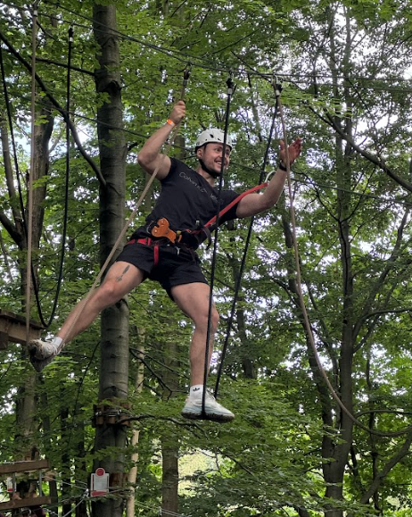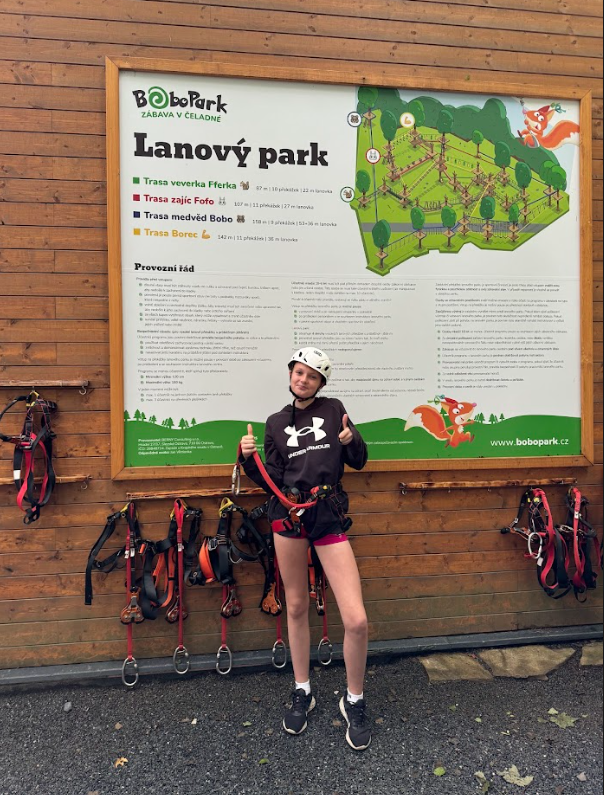 Po skvělém zážitku na bobové dráze jsme se přesunuli do lanového centra ve stromech. Zde nás čekala nová výzva. Instruktoři nám nejdříve vysvětlili, jak se bezpečně pohybovat po lanových překážkách, a pak už jsme mohli vyrazit. Lanové centrum bylo vysoko ve stromech a nabízelo různé úrovně obtížnosti. Někteří z nás zvládli i ty nejtěžší trasy, jiní se raději drželi jednodušších.