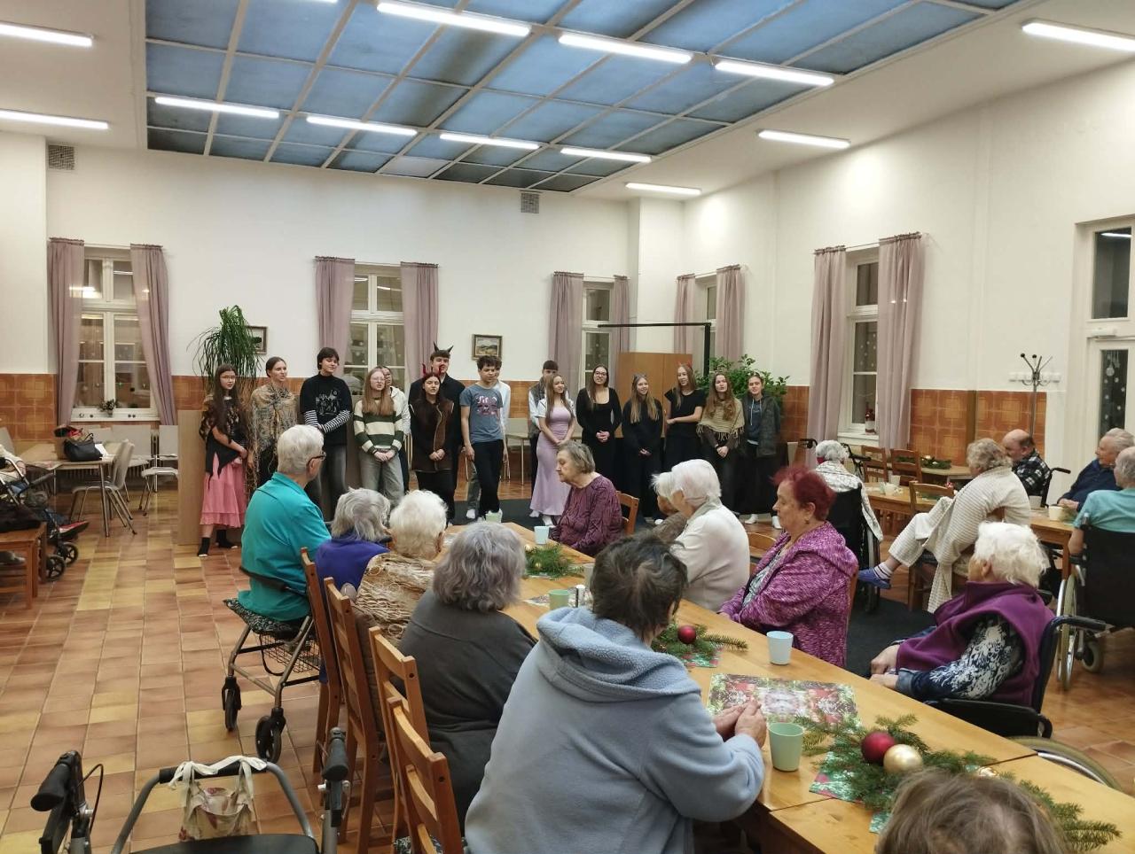 Se stejným programem pak žáci navštívili i místní domov důchodců. Pohádka, hudba i zpěv potěšily tamní seniory, vykouzlily úsměvy na tvářích a přinesly radost i dojetí. Pro mnohé z nich to byl milý návrat do dětství a zároveň důkaz, že mladá generace myslí i na druhé.