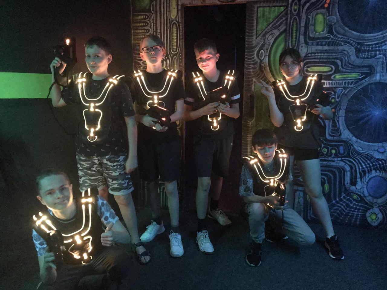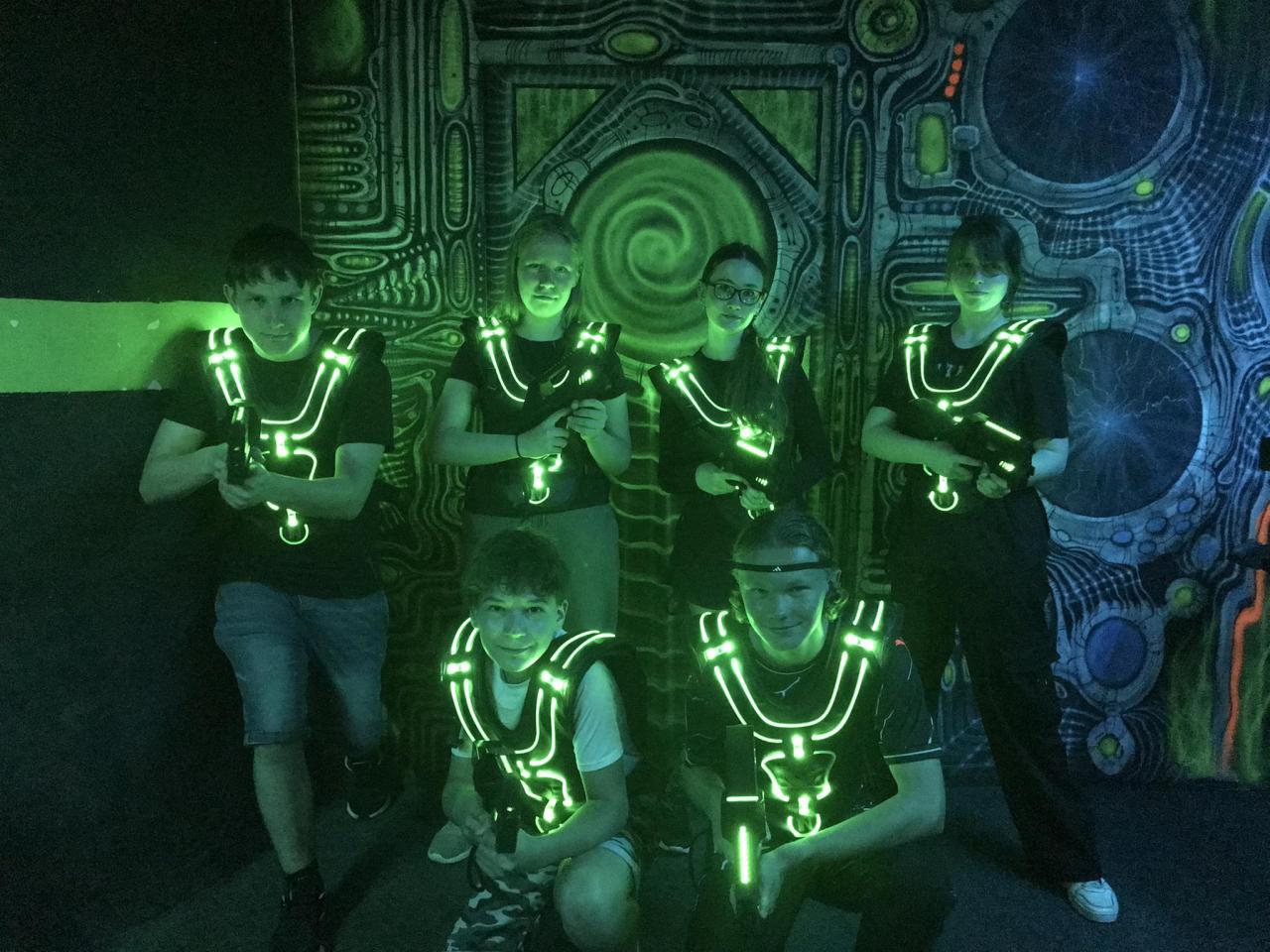 Jako první jsme navštívili Zábavní centrum Horník, kde nás čekaly hned dvě hodiny Laser game. Třída se rozdělila na 3 skupiny. Na začátku jsme dostali potřebné instrukce pro oblečení speciálních vest a obsluhu zbraní. Pak nás vpustili jako lvy do arény! Výsledky byly zajímavé. Na místní tabuli jsme mohli krásně vidět, kdo má nejpřesnější mušku, kdo se hodně naběhá nebo naopak kdo je největší lenoch.