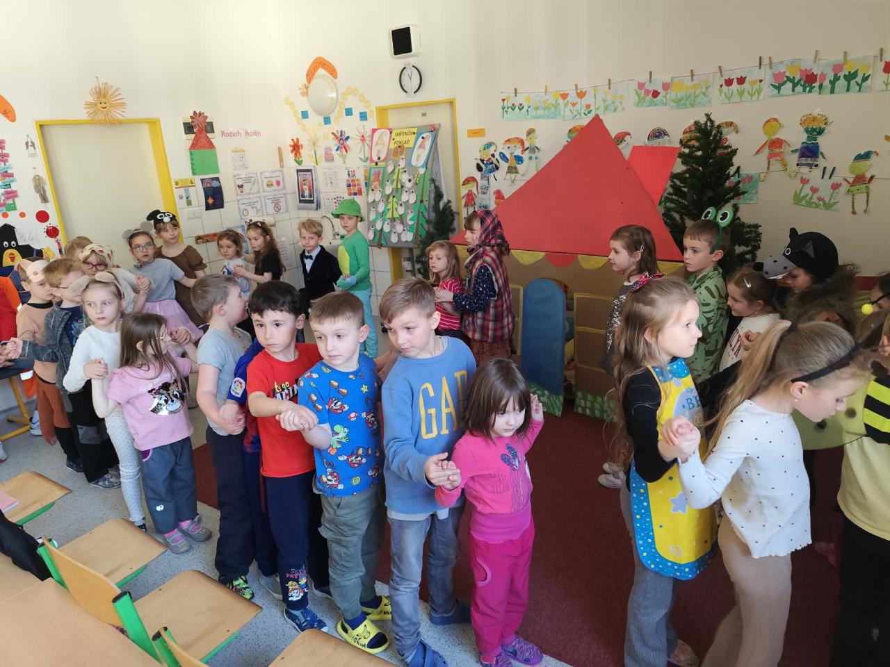 Celý kulturní program se nesl v duchu probouzejícího se jara. Prvňáčci nejprve zazpívali veselé písničky s jarní tematikou. Nechyběla ani recitace, která se předškolákům moc líbila, protože byla doprovázena pohybem a malou dramatizací. Velký úspěch sklidilo také divadelní vystoupení – pohádka O perníkové chaloupce, kterou malí herci zahráli s nadšením a jistou dávkou uměleckého talentu.