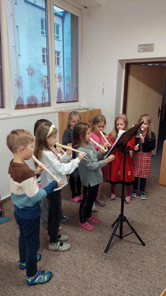 FLÉTNA je hudební kroužek, zde se děti učí hrát na zobcovou flétnu.